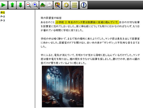 音声教材とは、発達障がい等により、読むことに困難がある児童生徒に向けたデジタル教材です。タブレットやパソコンで教科書を読み上げさせたり、読み上げ中の箇所をハイライトで表示したりできます。